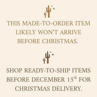 For our Made to Order treasures, our artisans need 4-8 weeks to handcraft each unique piece with the love & attention it deserves before sending it on its way to you.