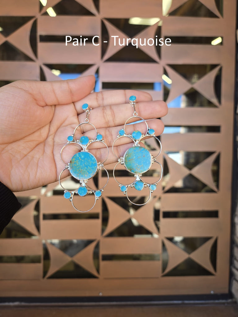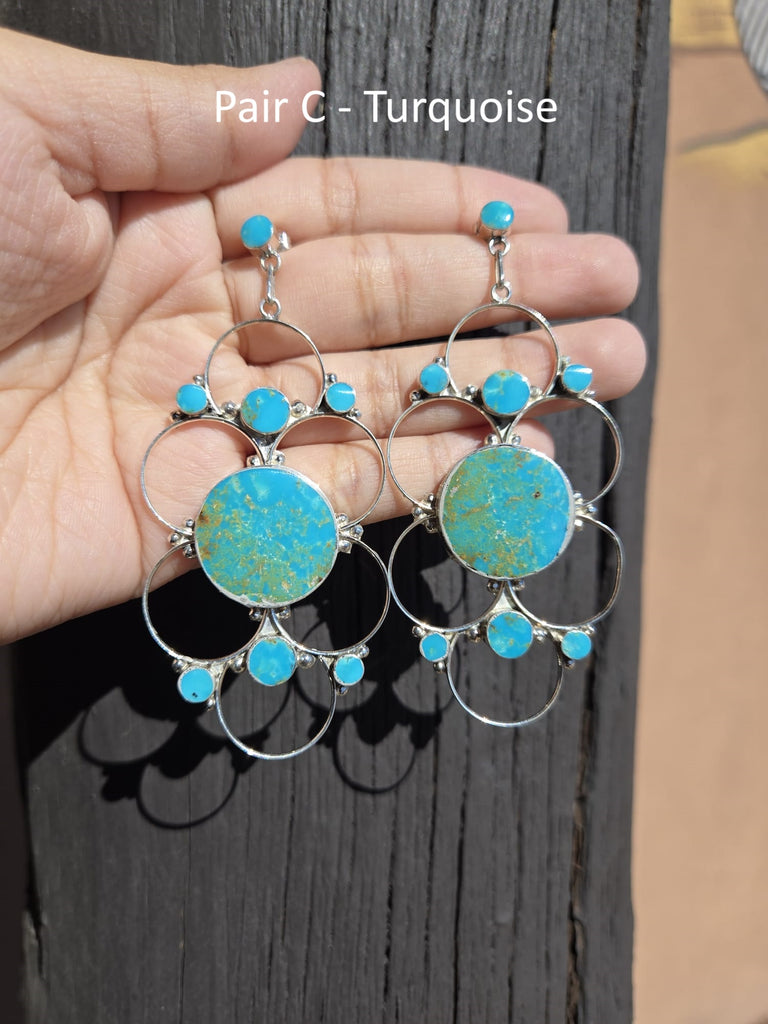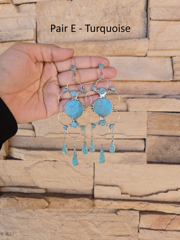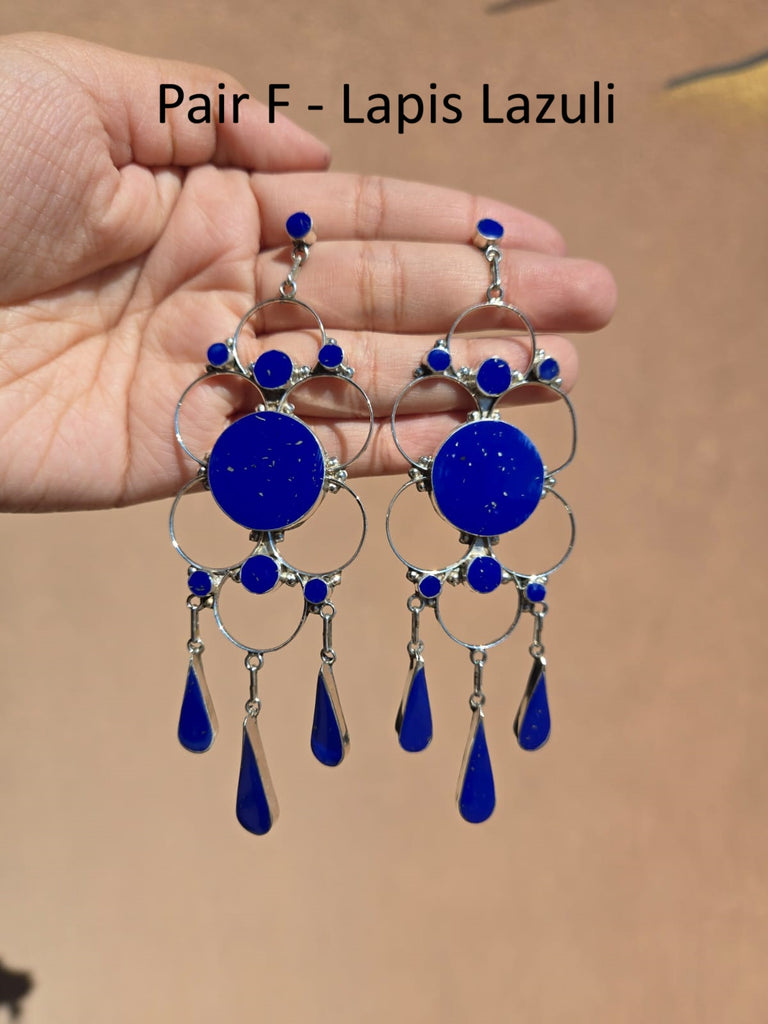 The silverwork varies for each pair and we have not only some incredible Turquoise stones, but also one divine pair with Lapis Lazuli stones, and another featuring stunning polished Malachite.