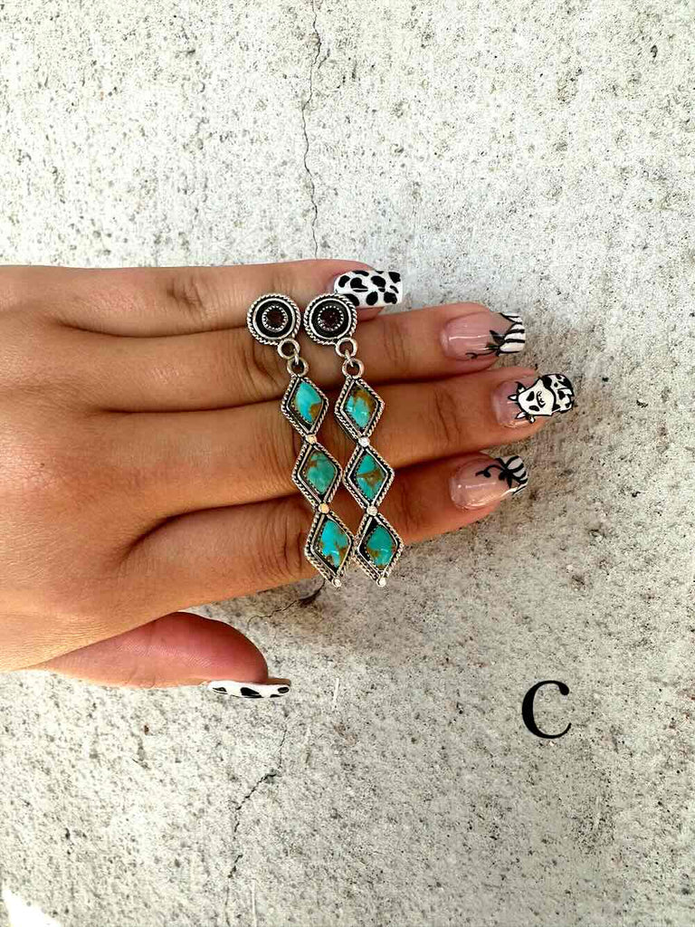 Incredible Diné made triple diamond drop earrings with two beautiful color stone options!