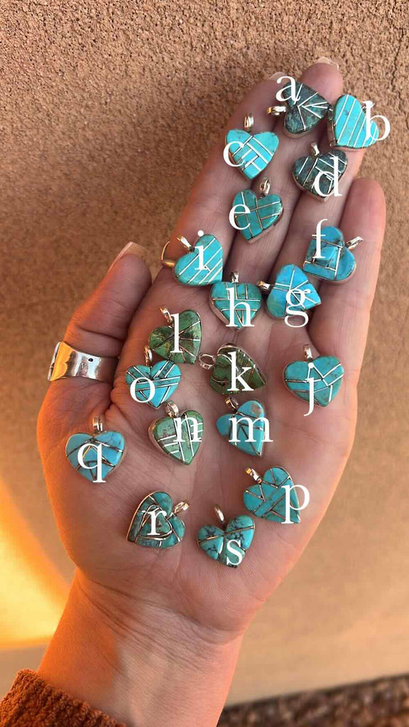 Absolutely gorgeous dainty heart pendant necklace, made with Zuni style intricate Turquoise inlay work. Incredible craftsmanship!