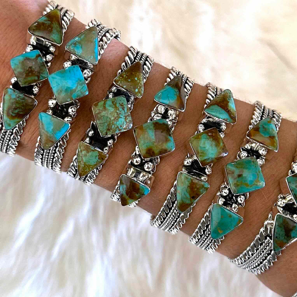 Handcrafted with hand-cut Ceremonial Turquoise and 925 Sterling Silver!