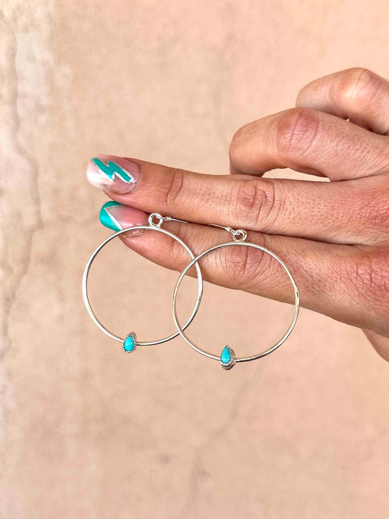Incredible super lightweight Sterling Silver hoop earrings embellished with sweet teardrop Turquoise stones.