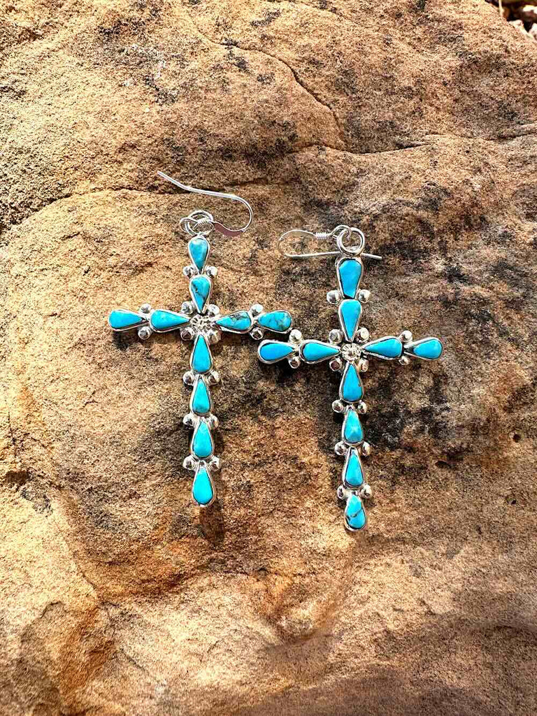 Handcrafted with 925 Sterling Silver and 10 Turquoise inlay stones by artist Bryce Vacit.