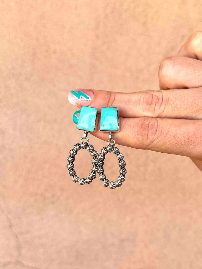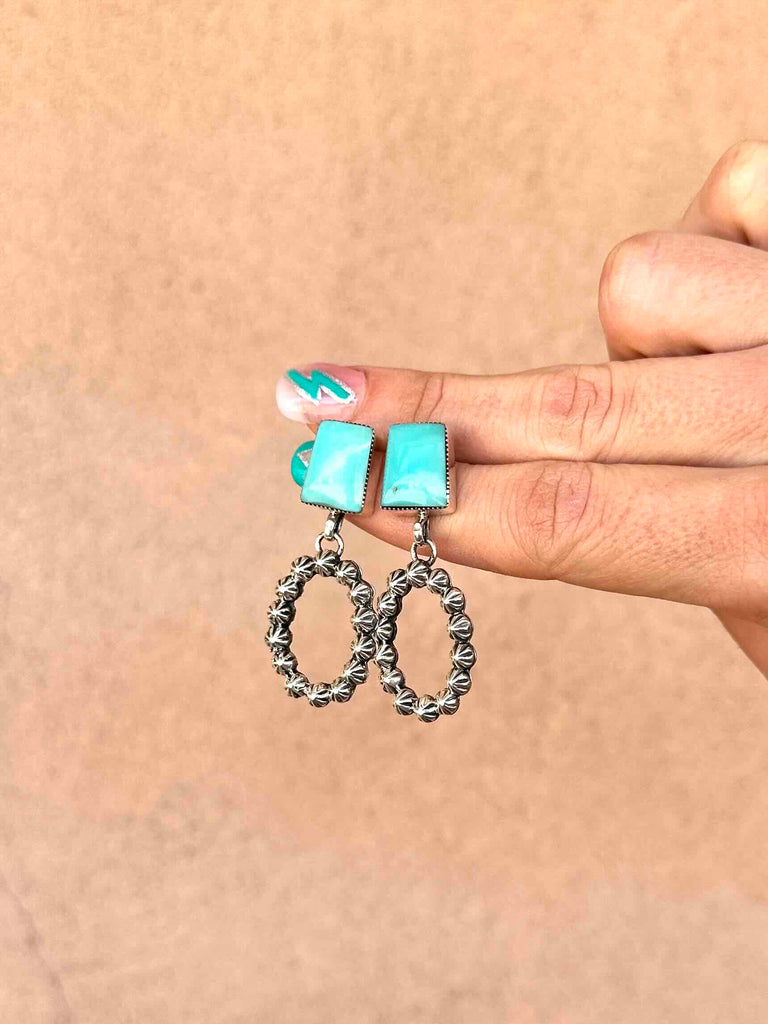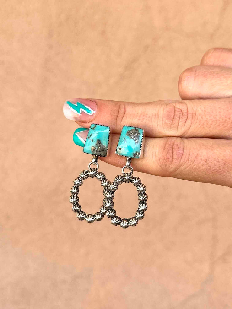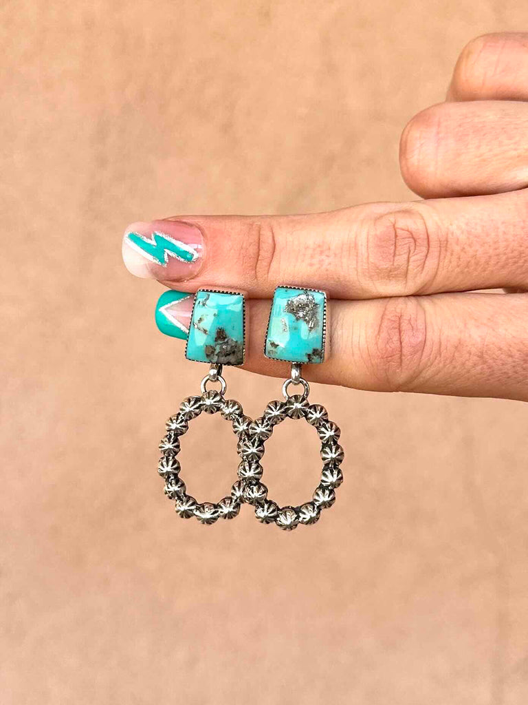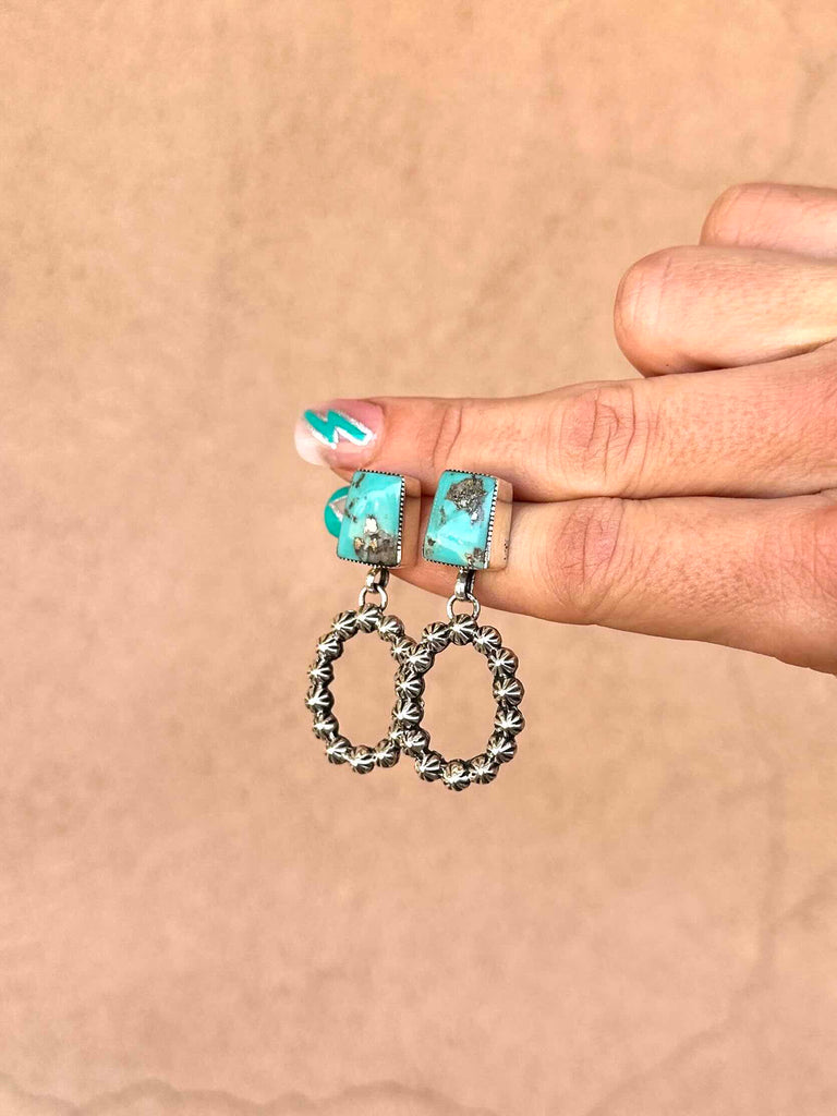 Sweet little Turquoise stones with a dangle loop of 925 Sterling Silver starbursts.