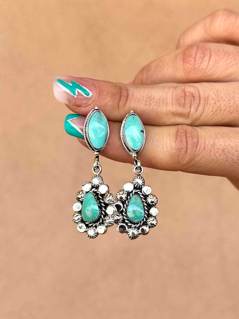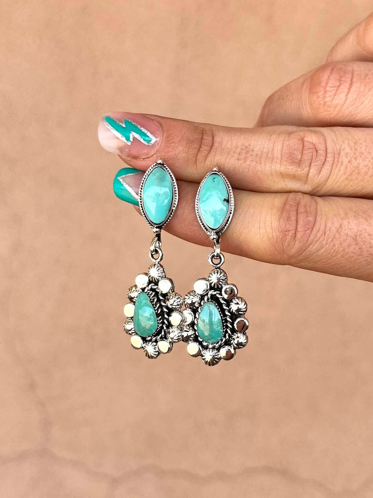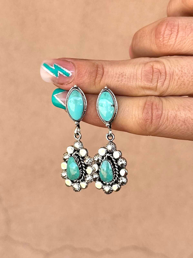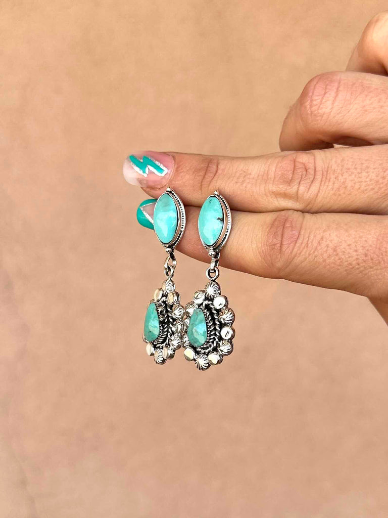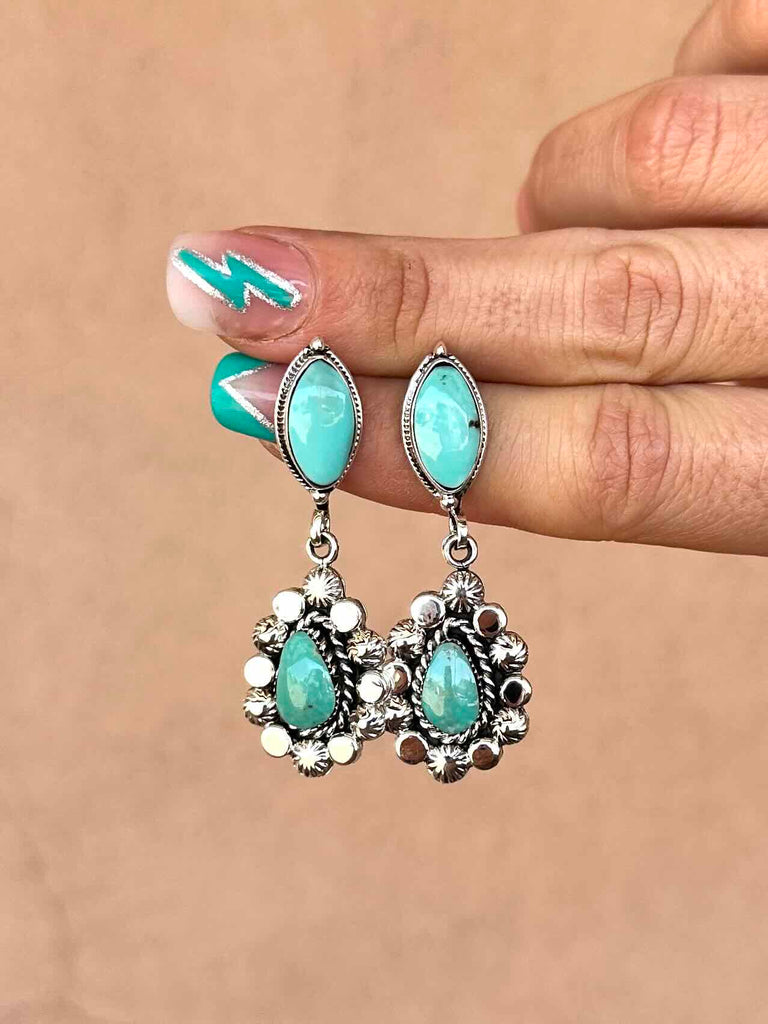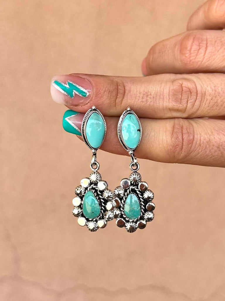 Super sweet dangle earrings with a gorgeous combination of genuine Turquoise marquise and teardrop stones, each set in 925 Sterling Silver - definitely gives maximum sparkle factor!