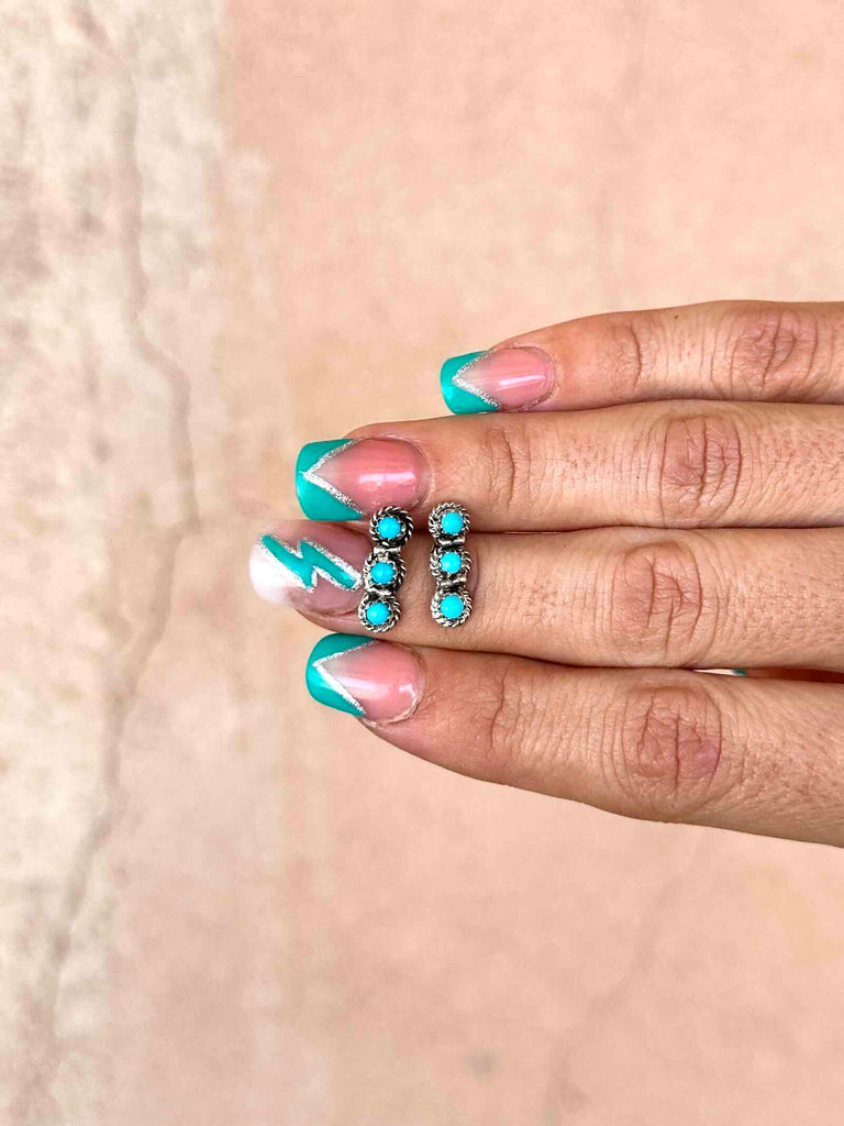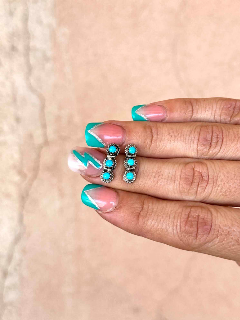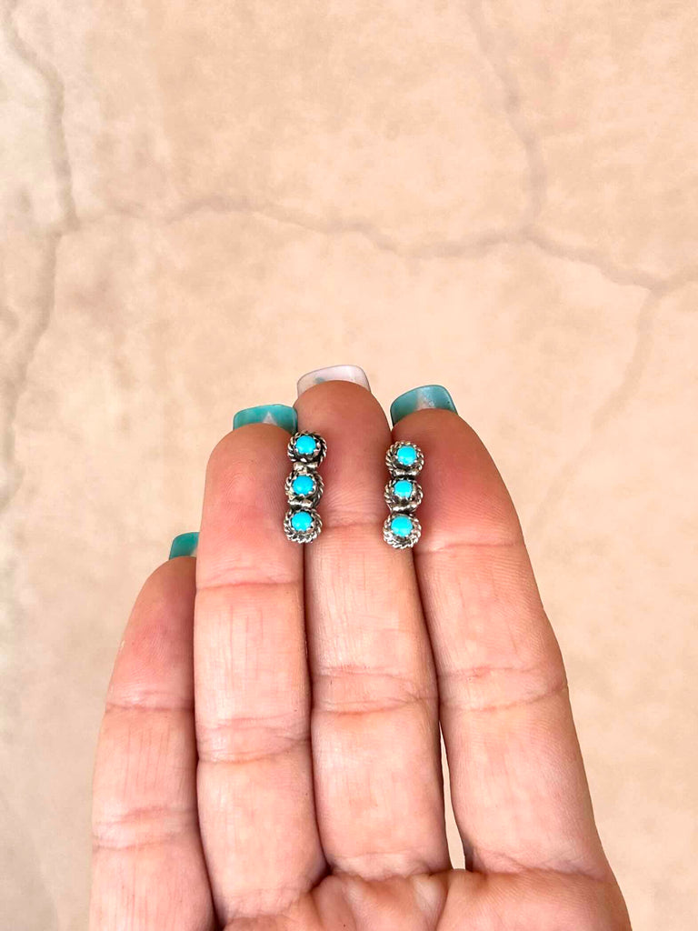 Stunning Zuni made Sterling Silver stud earrings made with three teeny Turquoise stones.