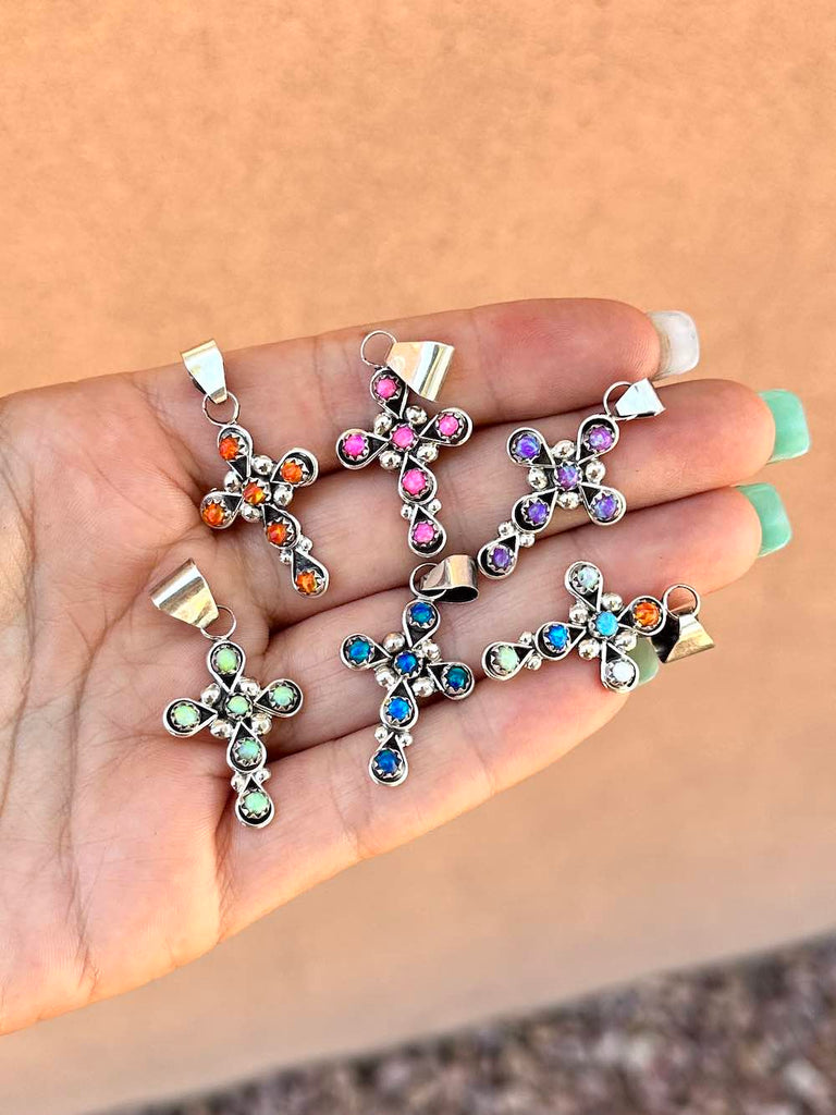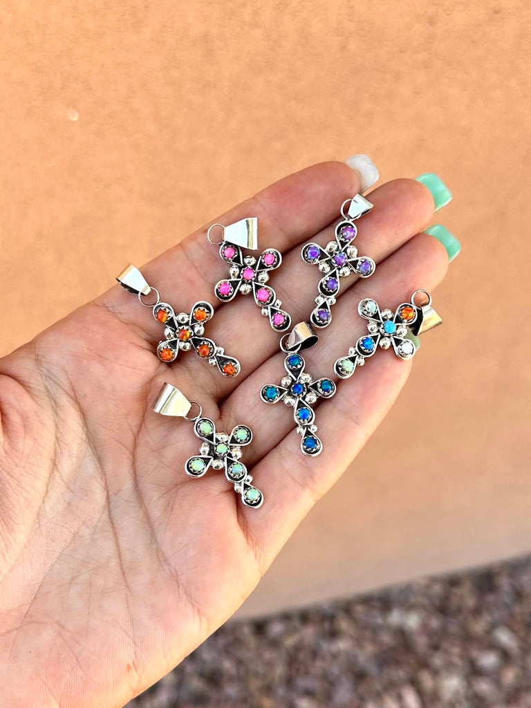 Gorgeous little cross pendants hand-crafted with 6 Kingman Turquoise stones set in 925 Sterling Silver.