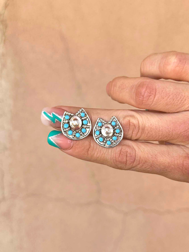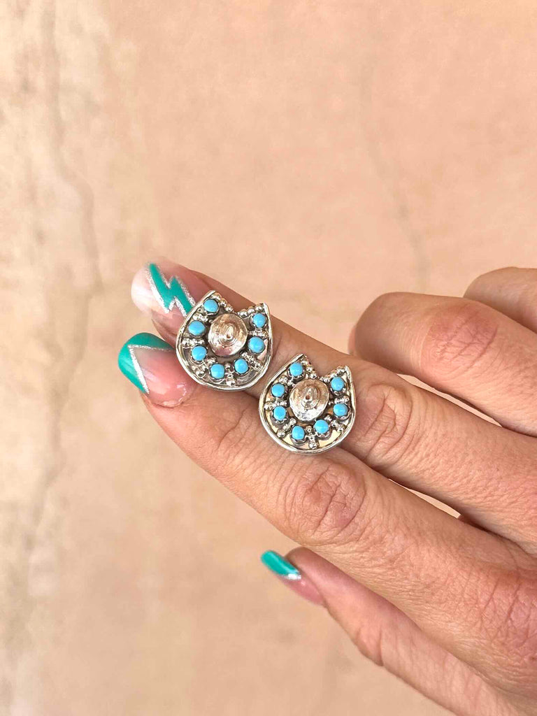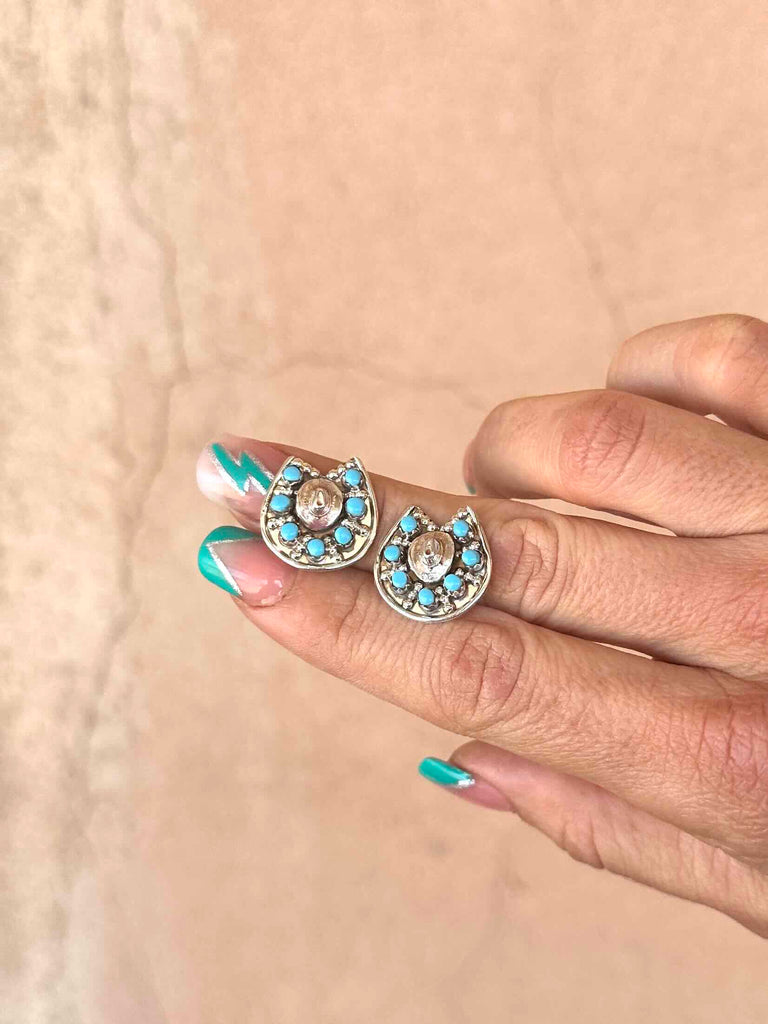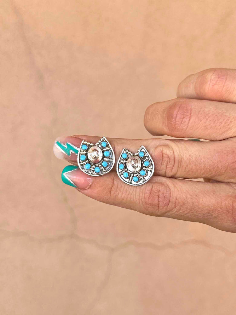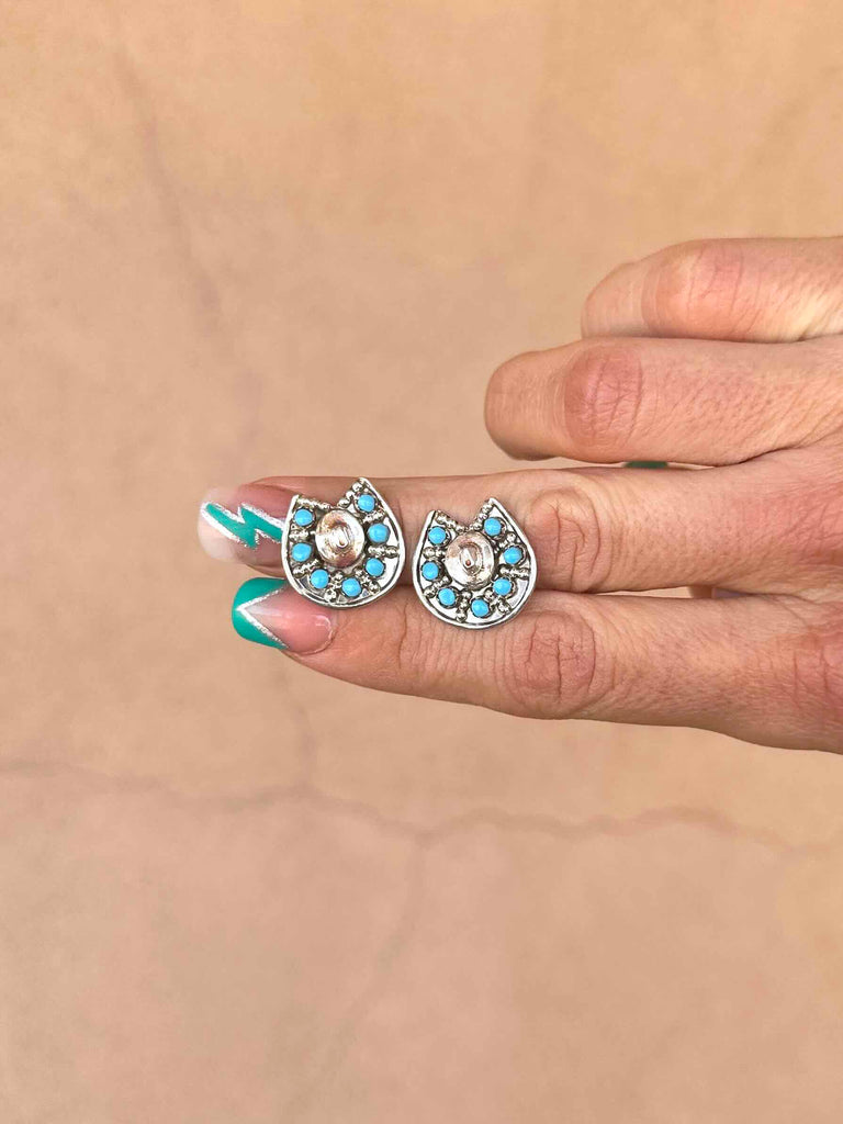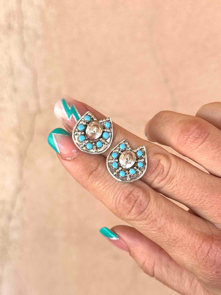 Turquoise studded Horseshoe earrings with center cowboy hat!!