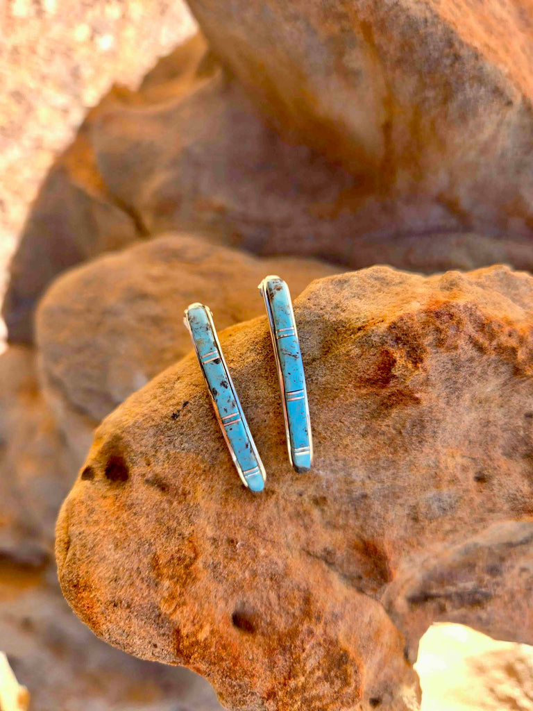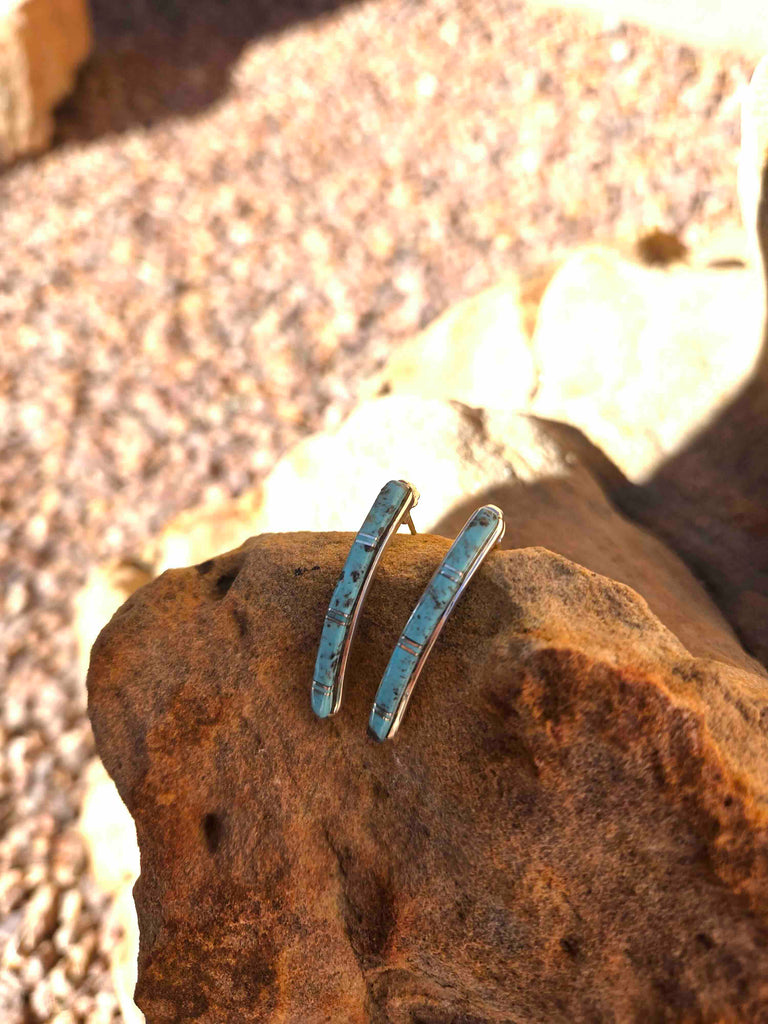 Zuni made on reservation with delicate genuine Turquoise inlay in a sturdy 925 Sterling Silver