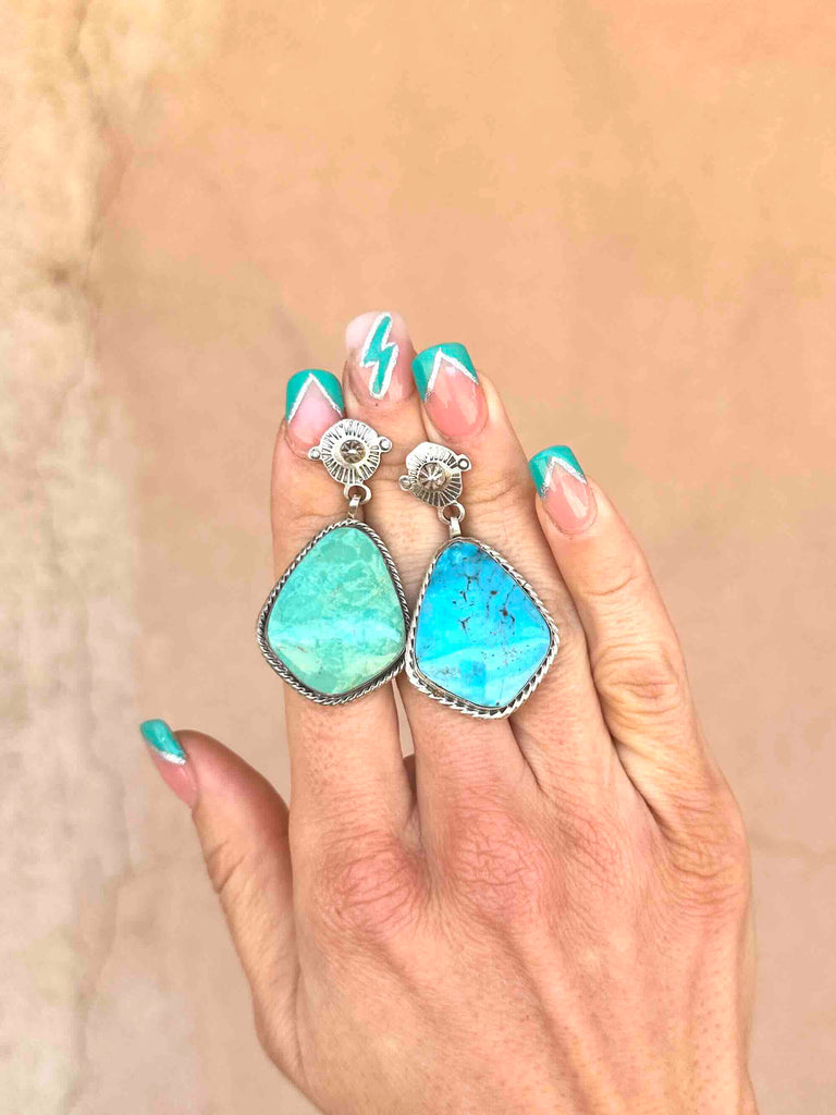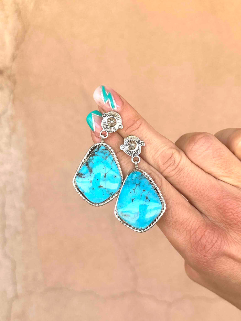 Such beautiful Turquoise stones in these delicious earrings! Simple design lets the unique stones do all the talking.