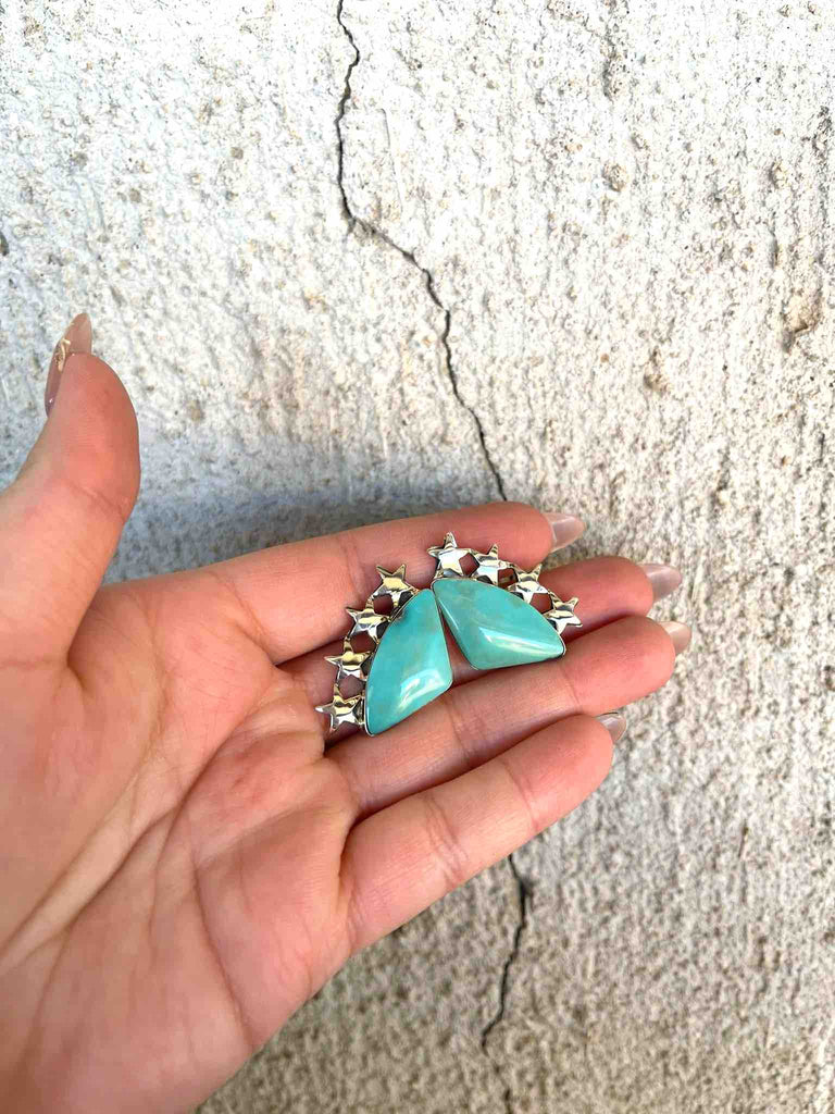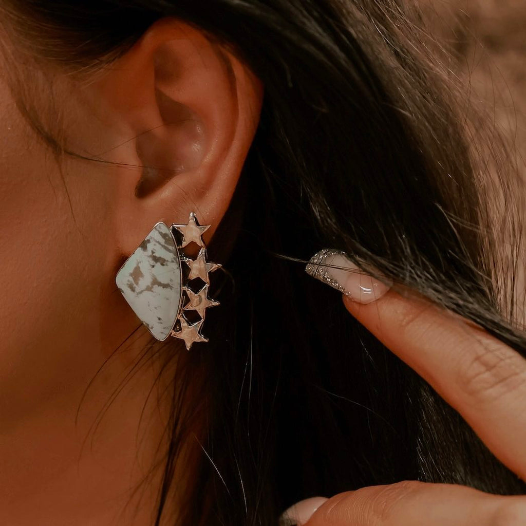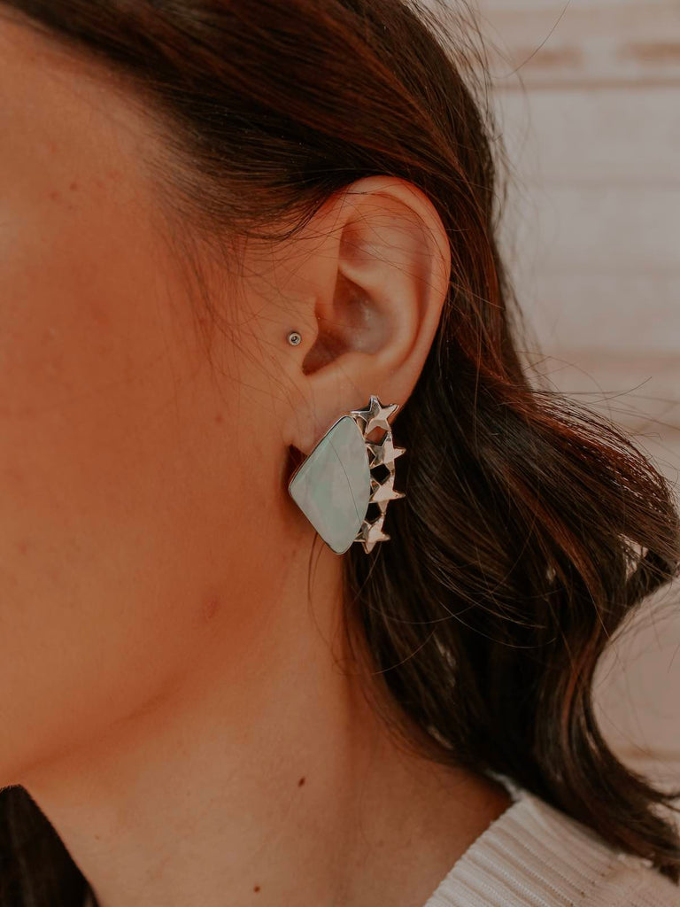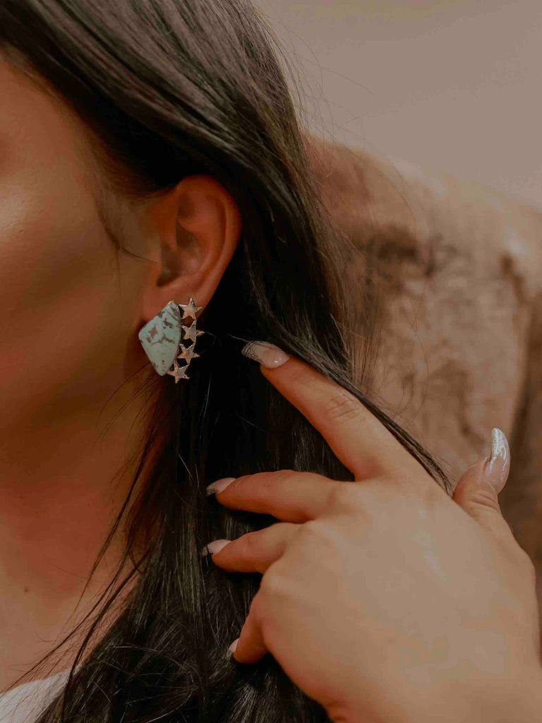 These shell shaped turquoise stones are edged with 4 of the sweetest silver stars you ever did see! Made with 925 Sterling Silver, these earrings are bound to be your new favorites.