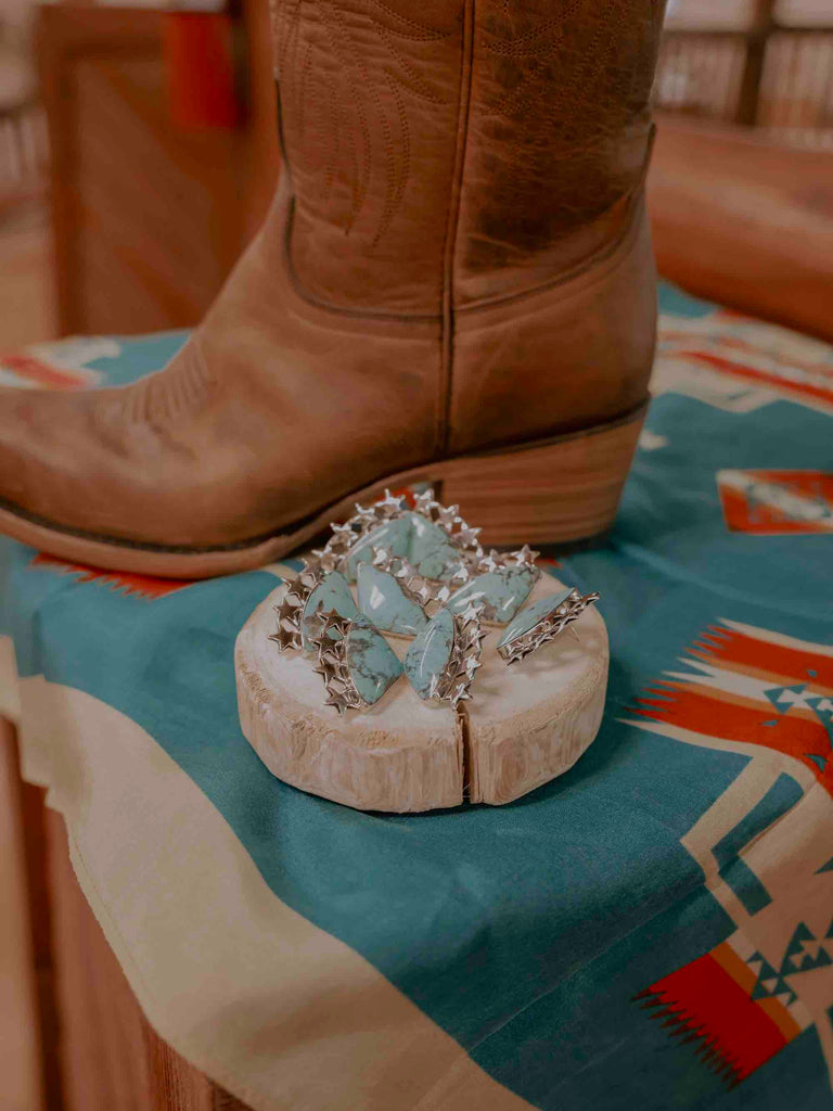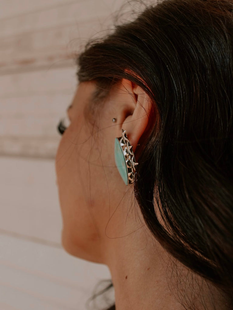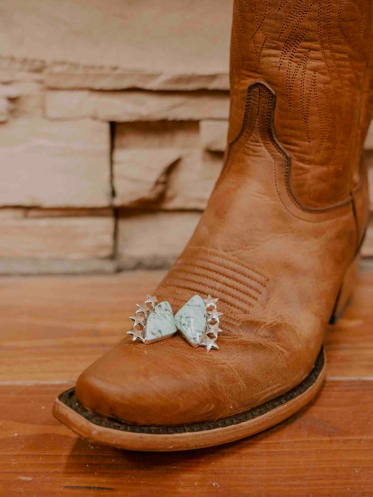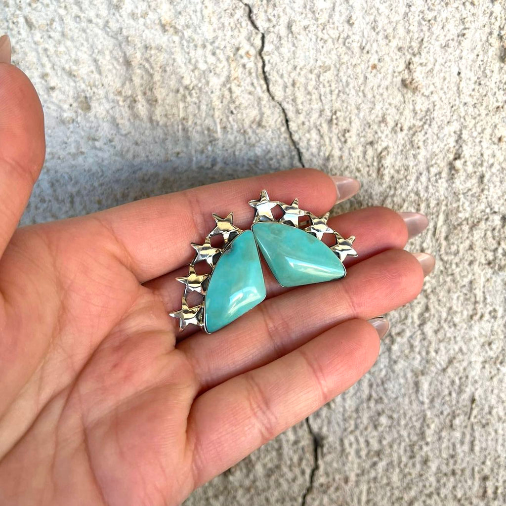 These shell shaped turquoise stones are edged with 4 of the sweetest silver stars you ever did see! Made with 925 Sterling Silver, these earrings are bound to be your new favorites.