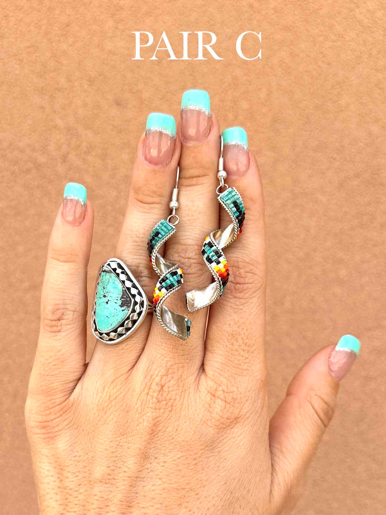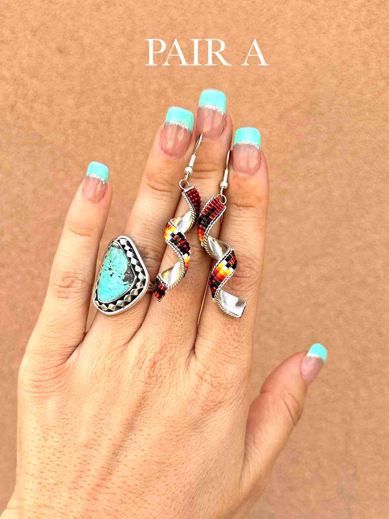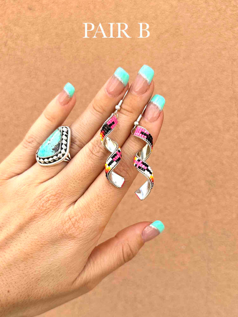 Stunning Navajo made beaded earrings made from 925 Sterling Silver and finished with exceptionally crafted beadwork.