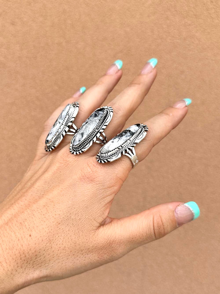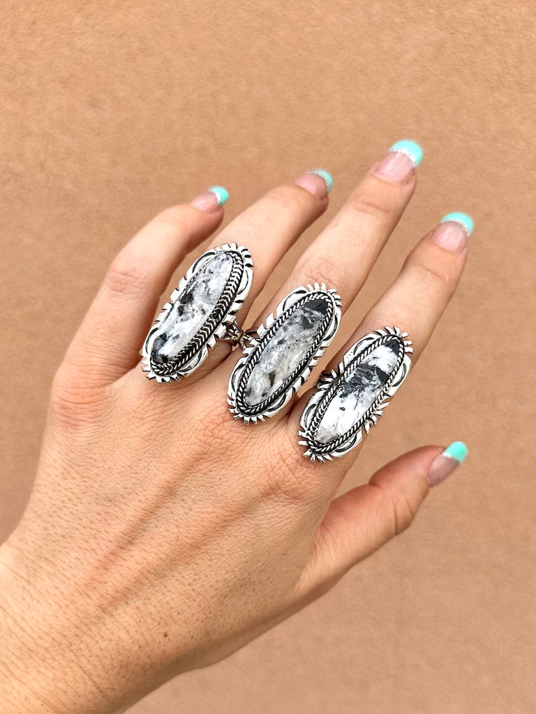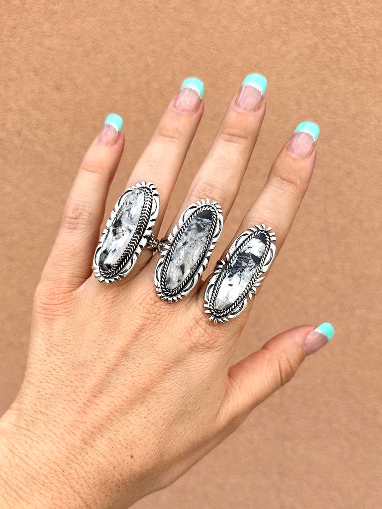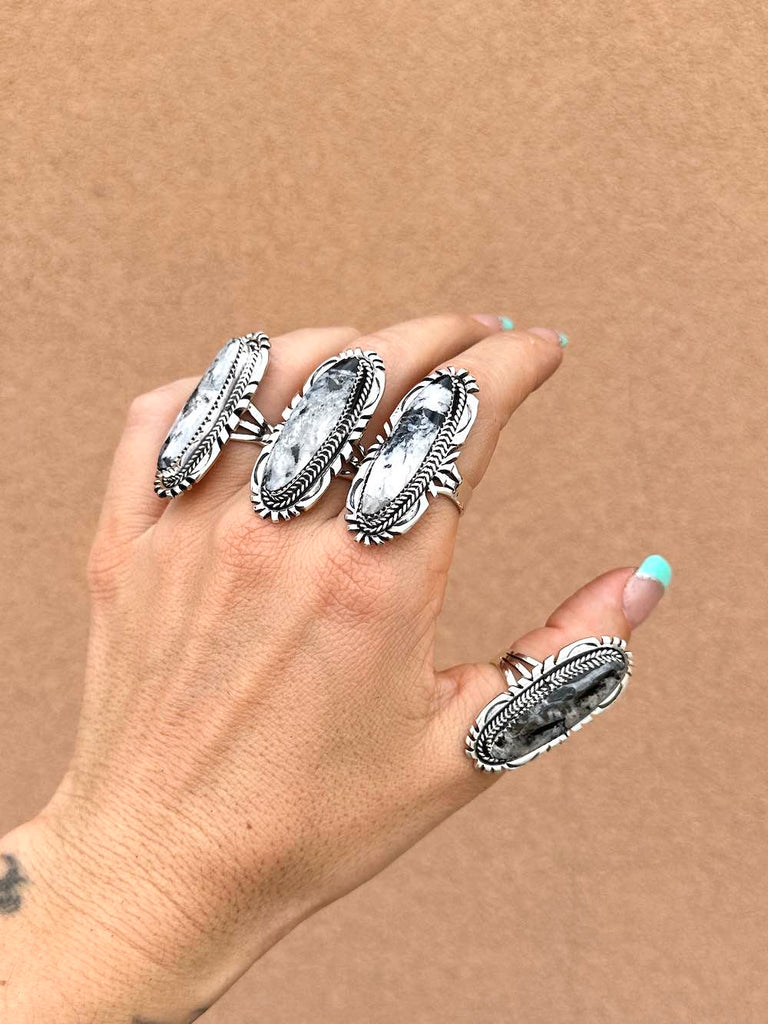 Hand-crafted BIG statement ring with genuine White Buffalo stone and funky silverwork!