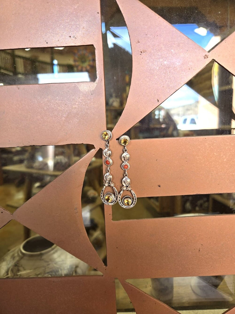 Absolutely dazzling earrings set with Red Coral and Citrine stones, with Sterling Silver horseshoes.