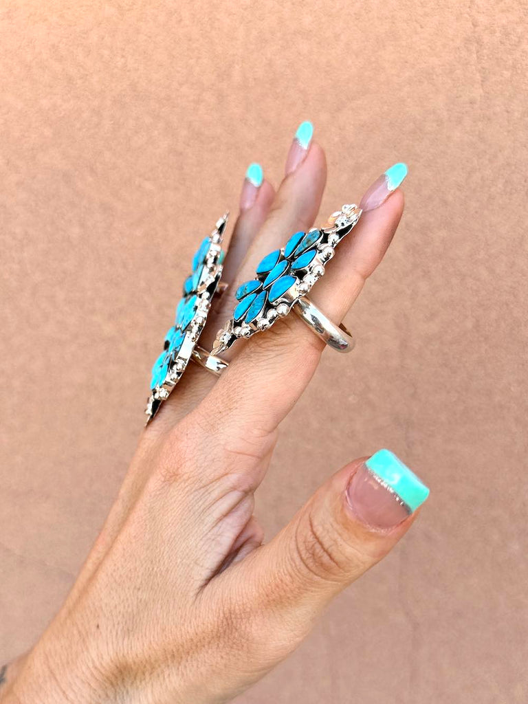 Featuring 9 genuine, hand-cut turquoise stones set in 925 Sterling Silver right here in New Mexico.
