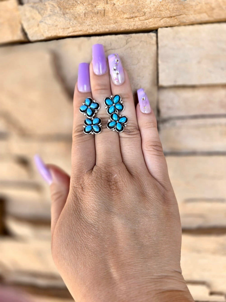 These small Blue Turquoise and Sterling Silver flower shaped earrings are the perfect size for adding a pop of color to any outfit.