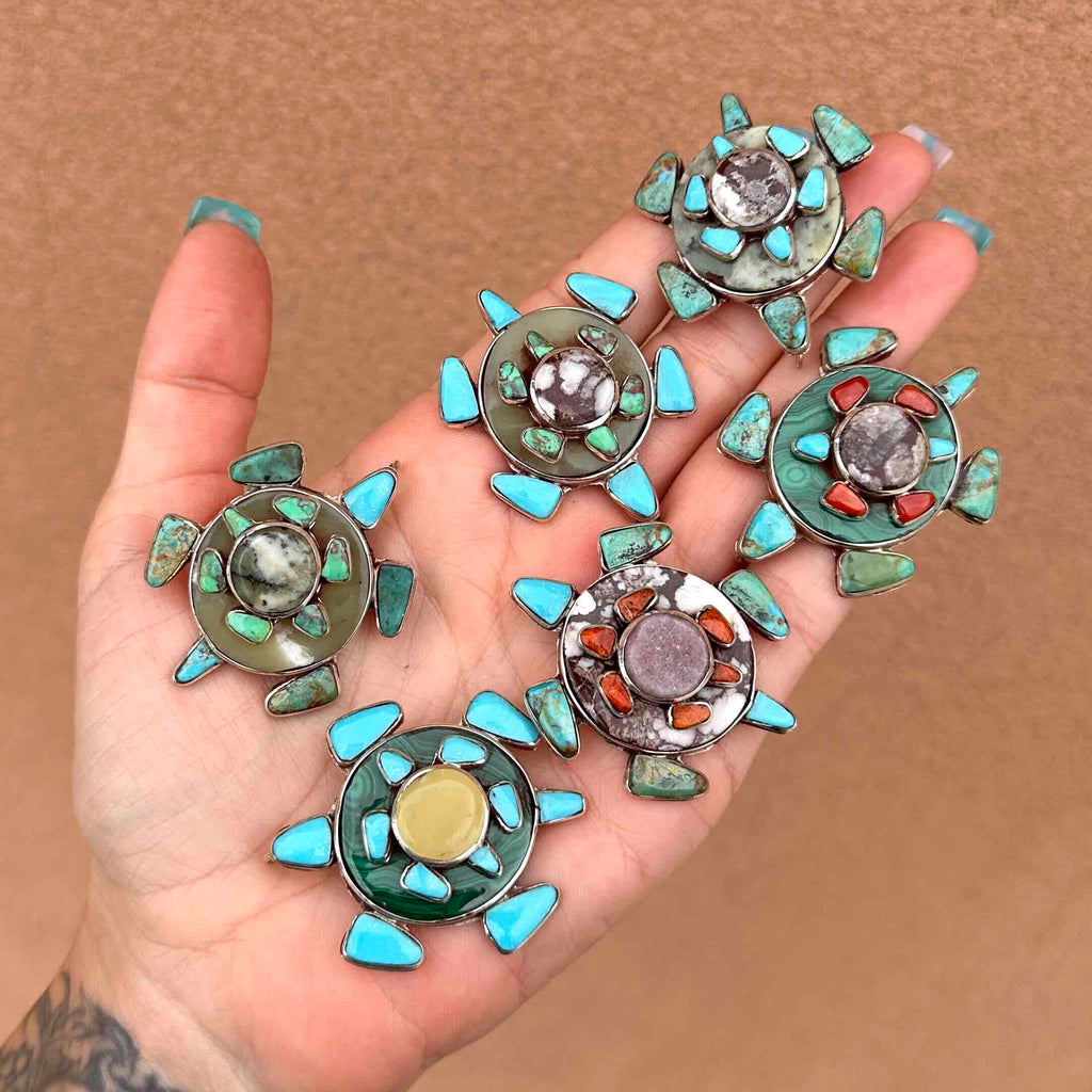 Super unique, hand-cut turtle brooches set in 925 Sterling Silver.