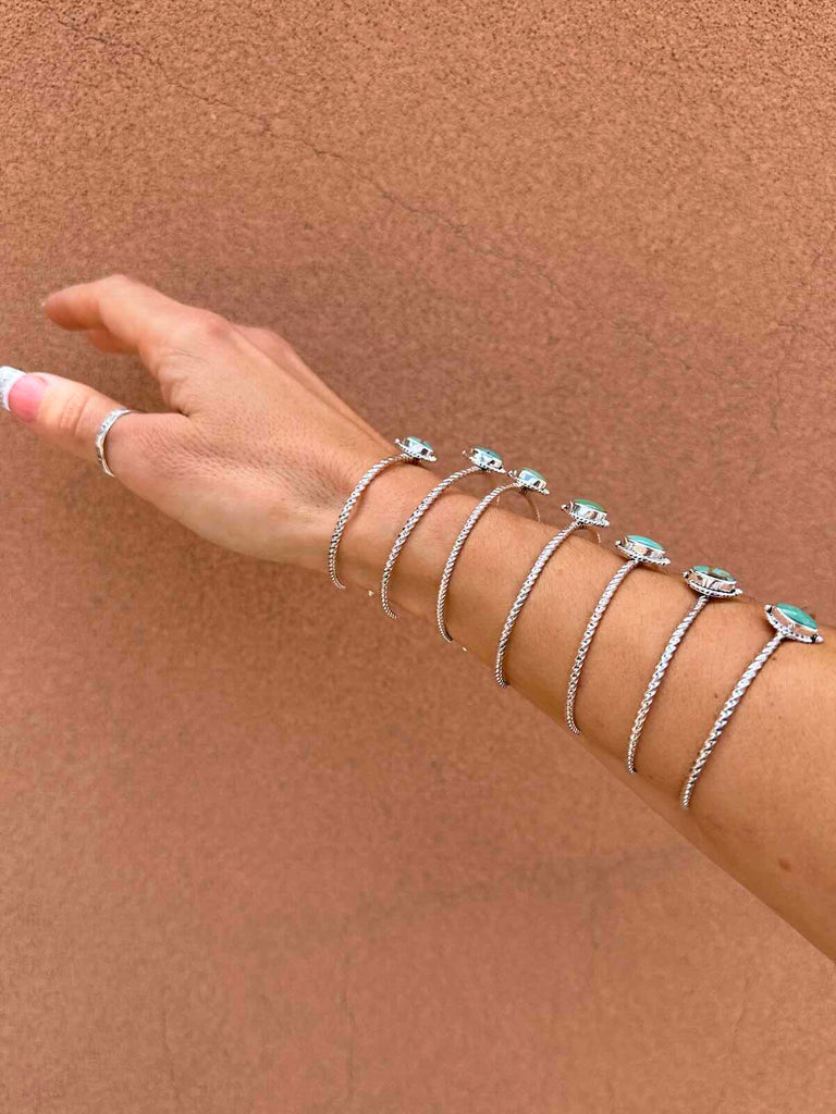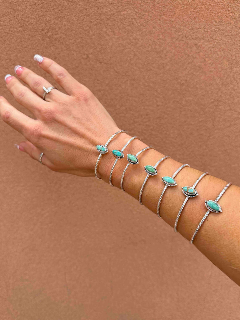 Simple, beautiful, lightweight cuff handcrafted with Genuine Blue Campitos Turquoise and 925 Sterling Silver.