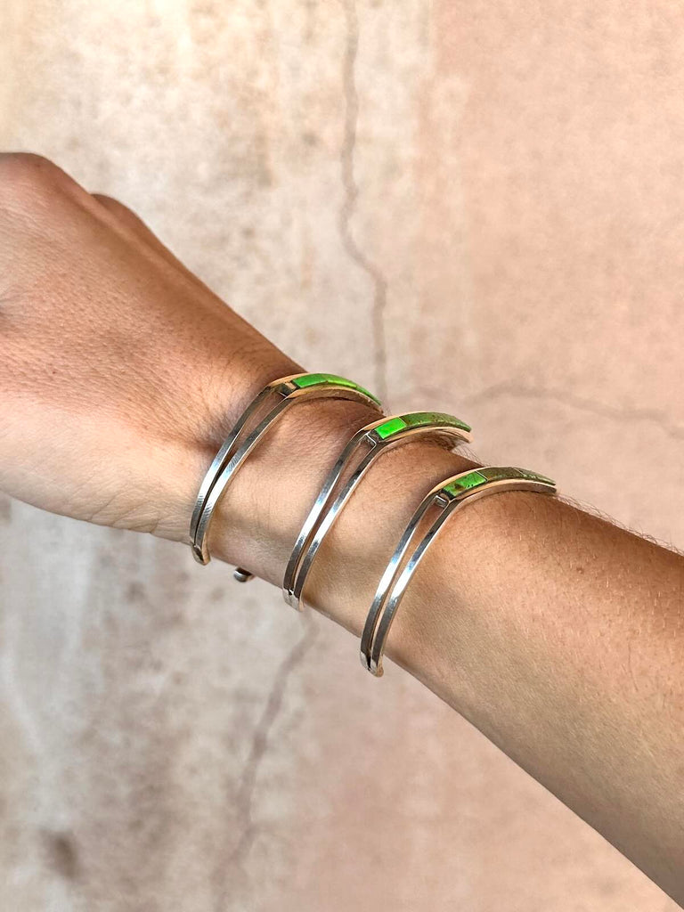 Incredible chevron cuffs made from 925 Sterling Silver with quality inlay Agave Green Turquoise. These babies look incredible on!!!
