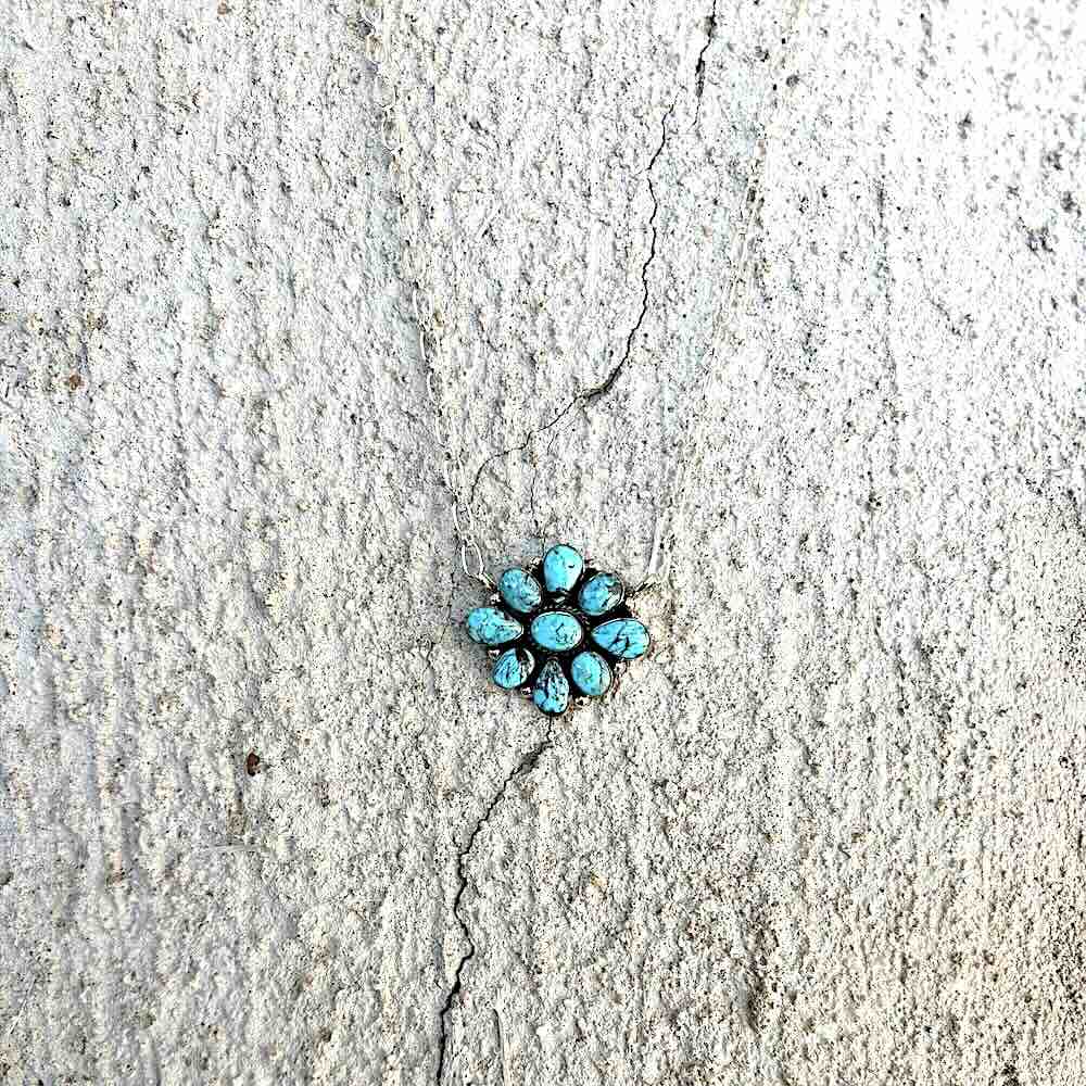 Simple but also BOLD Diné made Turquoise cluster necklace displayed on a gorgeous 18" paperclip chain.