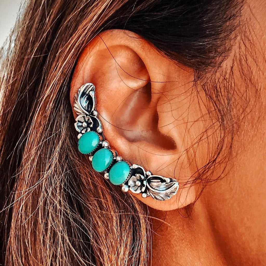 Ahhhhmazing flower embellished ear crawler that stays securely on the ear with a stud + cuff back!
