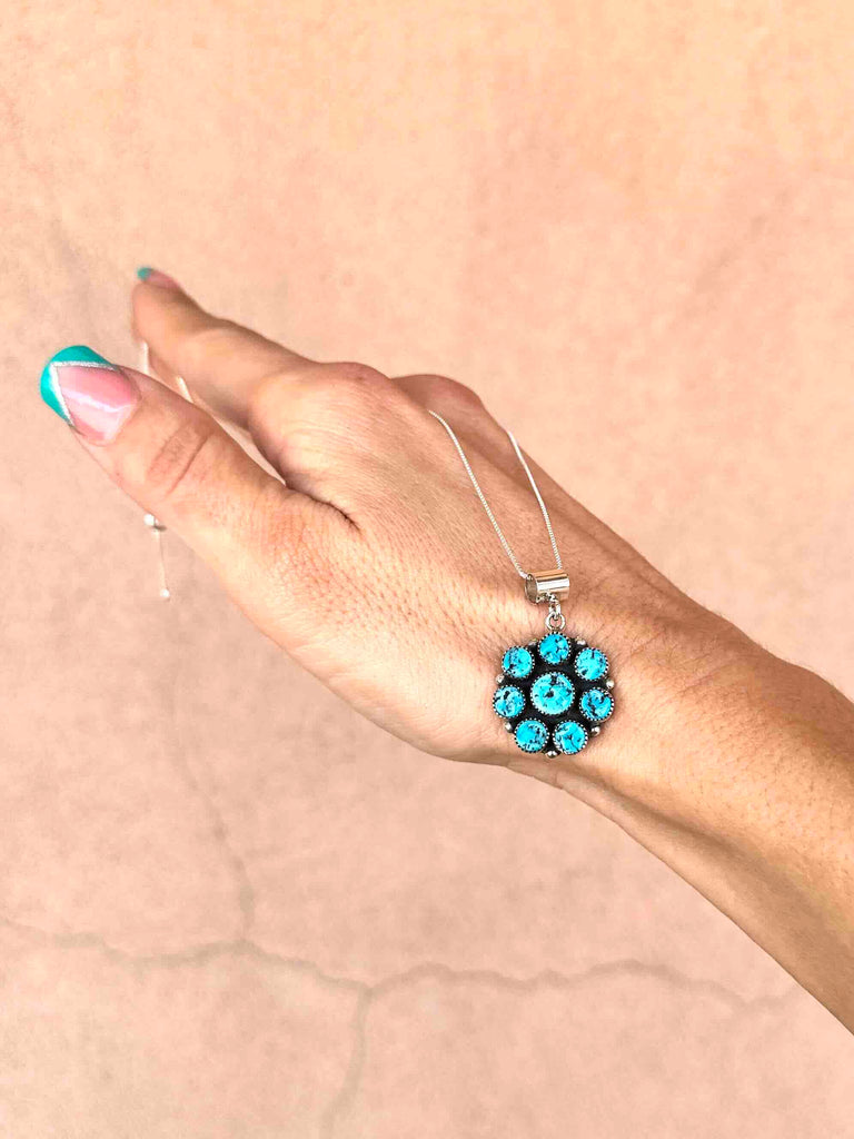 Stunning Sterling Silver stud drop Turquoise cluster pendant.
