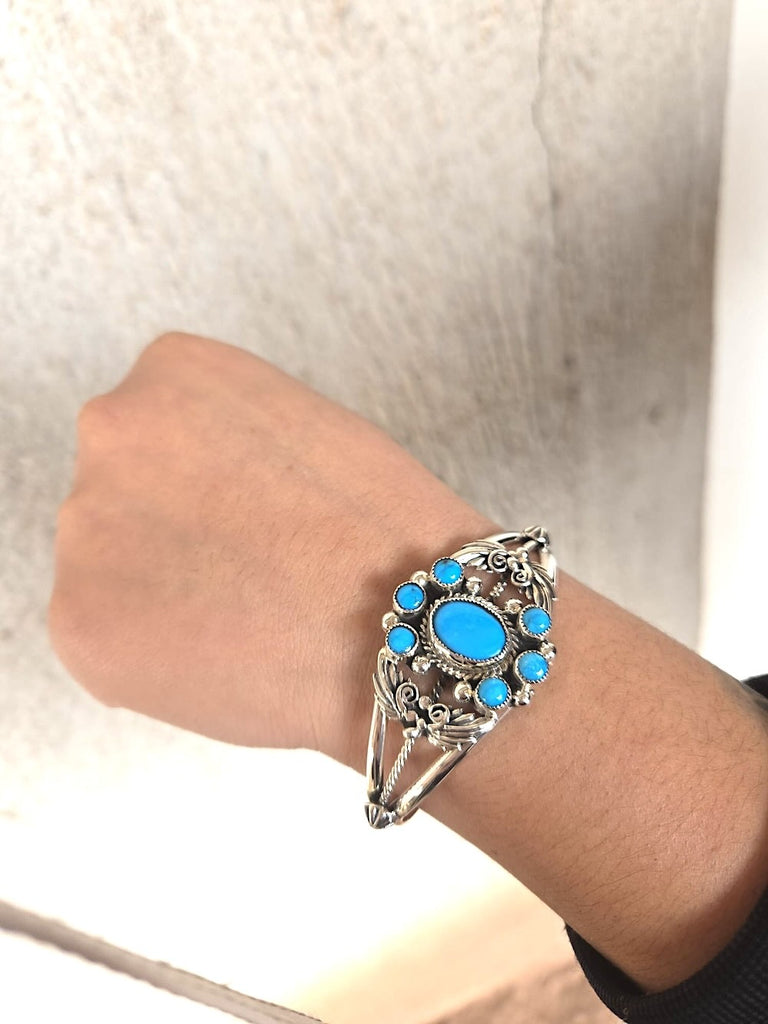 Very sweet rare Sleeping Beauty Blue Turquoise cuff with incredible Sterling Silver detailing.