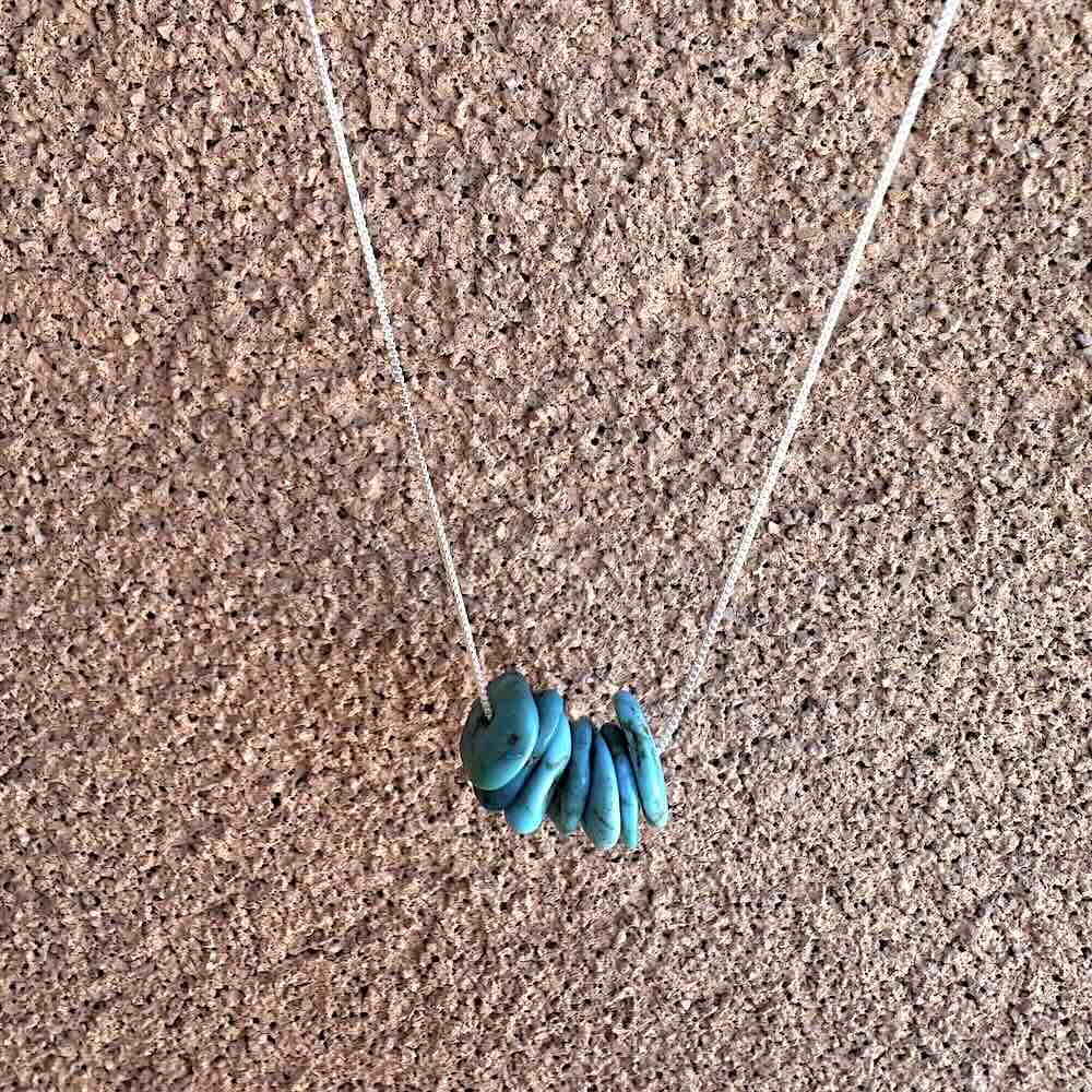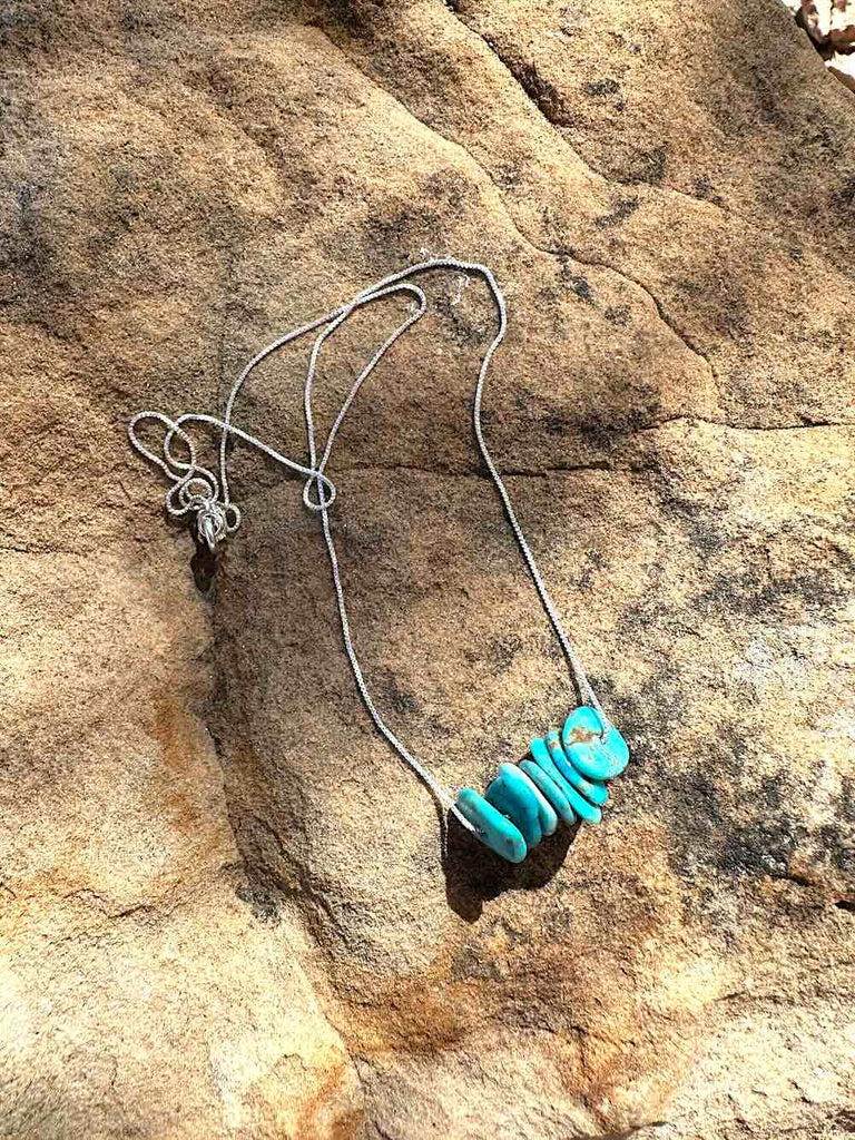 Beautiful hand-made necklace with genuine China Mountain Turquoise disc beads on a Sterling Silver snake chain. Expect unique colors of puuurfection!