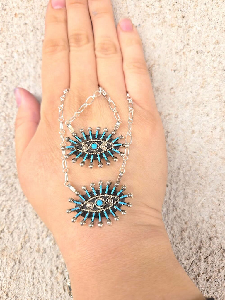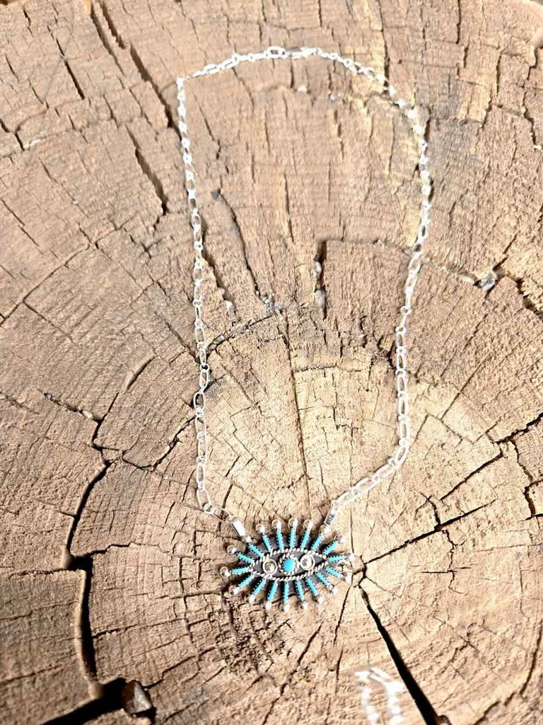 Incredible Zuni made cluster necklace in the shape of an eye. Such a vibe!