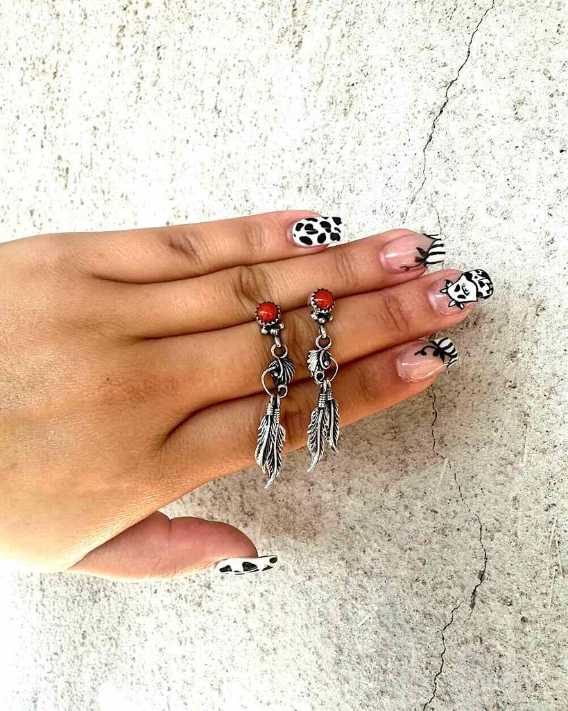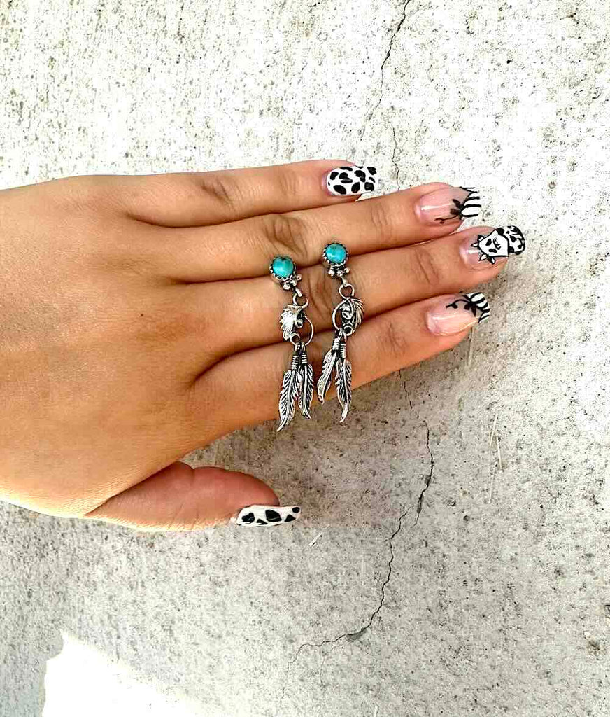 Turquoise and feathers has a special place in our heart! Loving these sweet earrings made by artist Leona Delgarito.