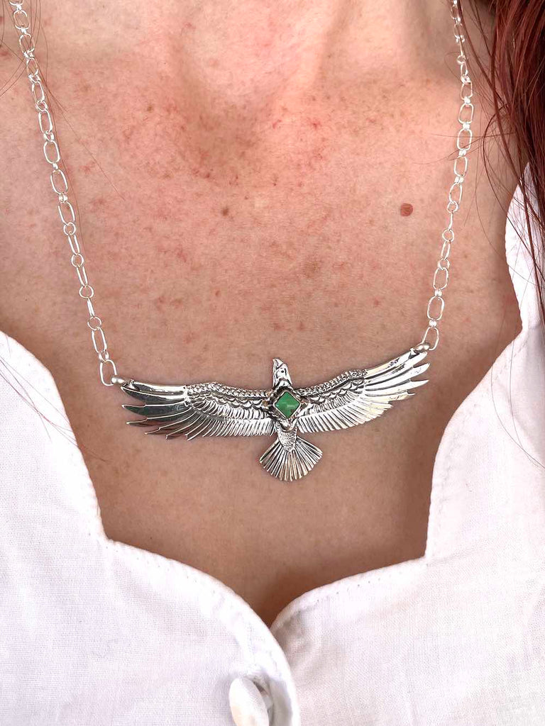 Stunning .925 Sterling Silver Thunderbird necklace with outstretched wings and seriously impressive detail. 3'' in total.